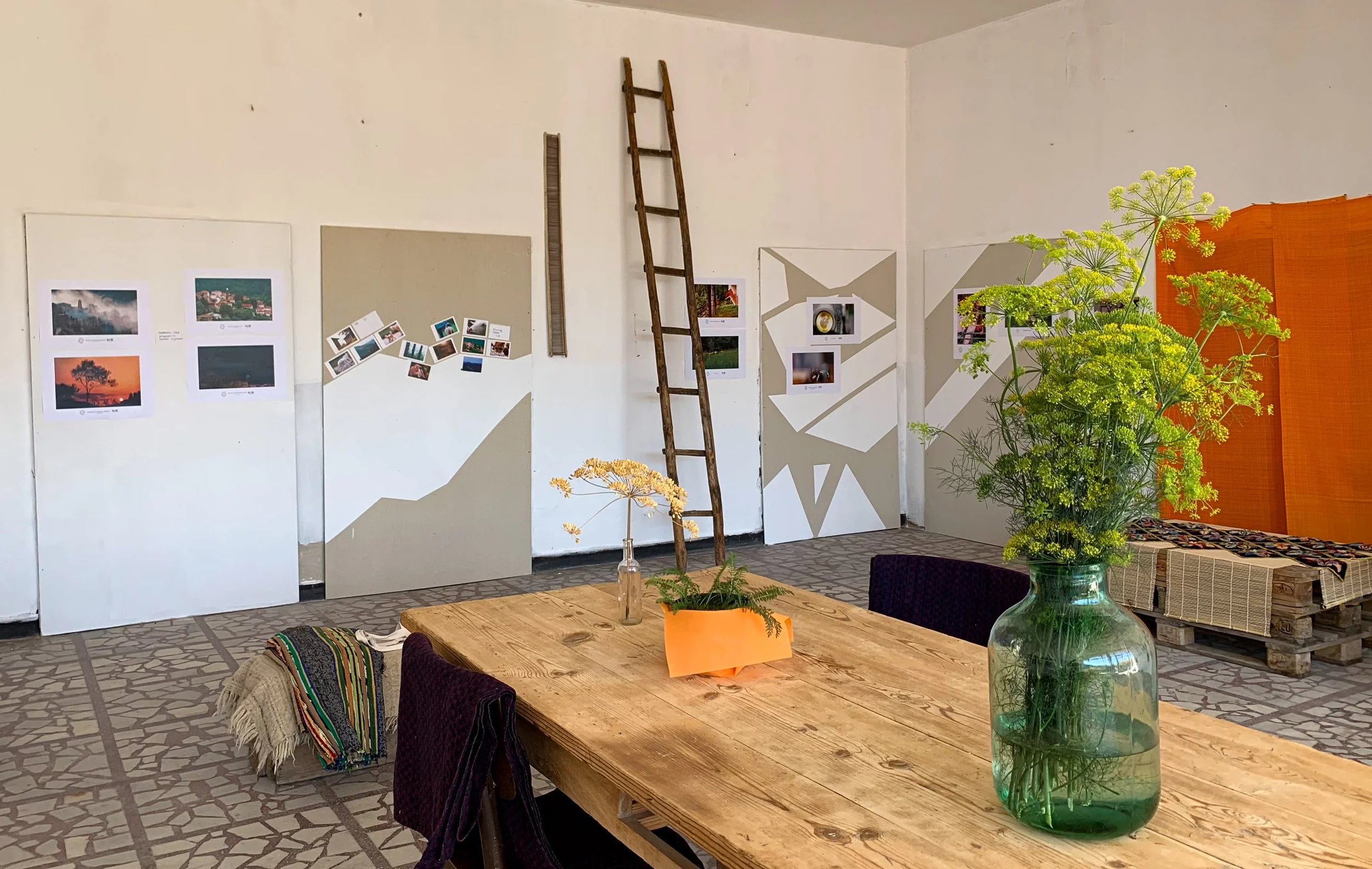 Импулсивно събрани кадри от изминалата година в с.Славейно, изпечатани под формата на плакати със заглавие ,направиха възможна изложба под надслов “Славейно Настояще”. При едно по-спокойно и обмислено начинание от сорта на соло изложба с възможност за пълна свобода на декора и изложбената площ бих разширила диапазона на фотографии от двете ми посещения през 2016 и 2018, а защо не и някои сюжетни, но спонтанният характер на събора наложи да покажа точно и само тези.
